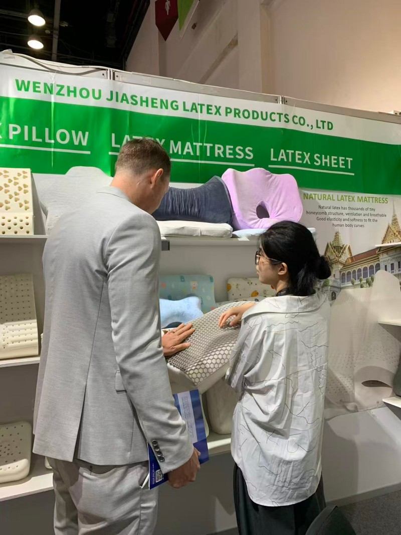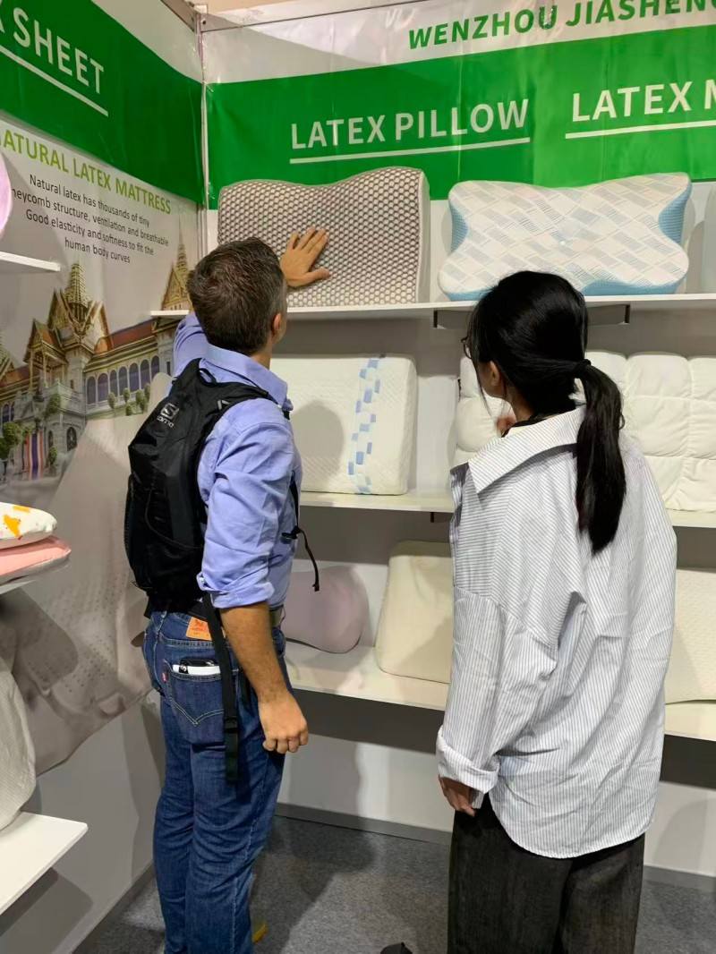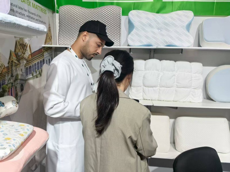 Tại Triển lãm Giấc ngủ Dubai này, chúng tôi rất vinh dự được giới thiệu những chiếc gối hỗ trợ giấc ngủ của mình cho du khách từ khắp nơi trên thế giới. Chúng tôi xin giới thiệu hai loại gối bán chạy nhất trên thị trường:gối cao su thiên nhiênvà vật liệu thông minh hiện đạigối xốp nhớ. Đặc tính phục hồi nhanh và chống dị ứng của mủ cao su rất được những người đam mê mủ cao su ưa chuộng. Trong khi đó, mút hoạt tính vừa vặn tối đa có thể mang lại giấc ngủ sâu. Sự giao tiếp sâu sắc của chúng tôi với khách hàng tại chỗ khiến chúng tôi cảm nhận được sự theo đuổi của họ đối với gối. Chúng tôi tin chắc rằng việc cung cấp các lựa chọn cá nhân cho các thói quen ngủ khác nhau là chìa khóa cho giấc ngủ chất lượng.